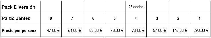 Grupo: hasta 8 jugadores. 4 personas por coche